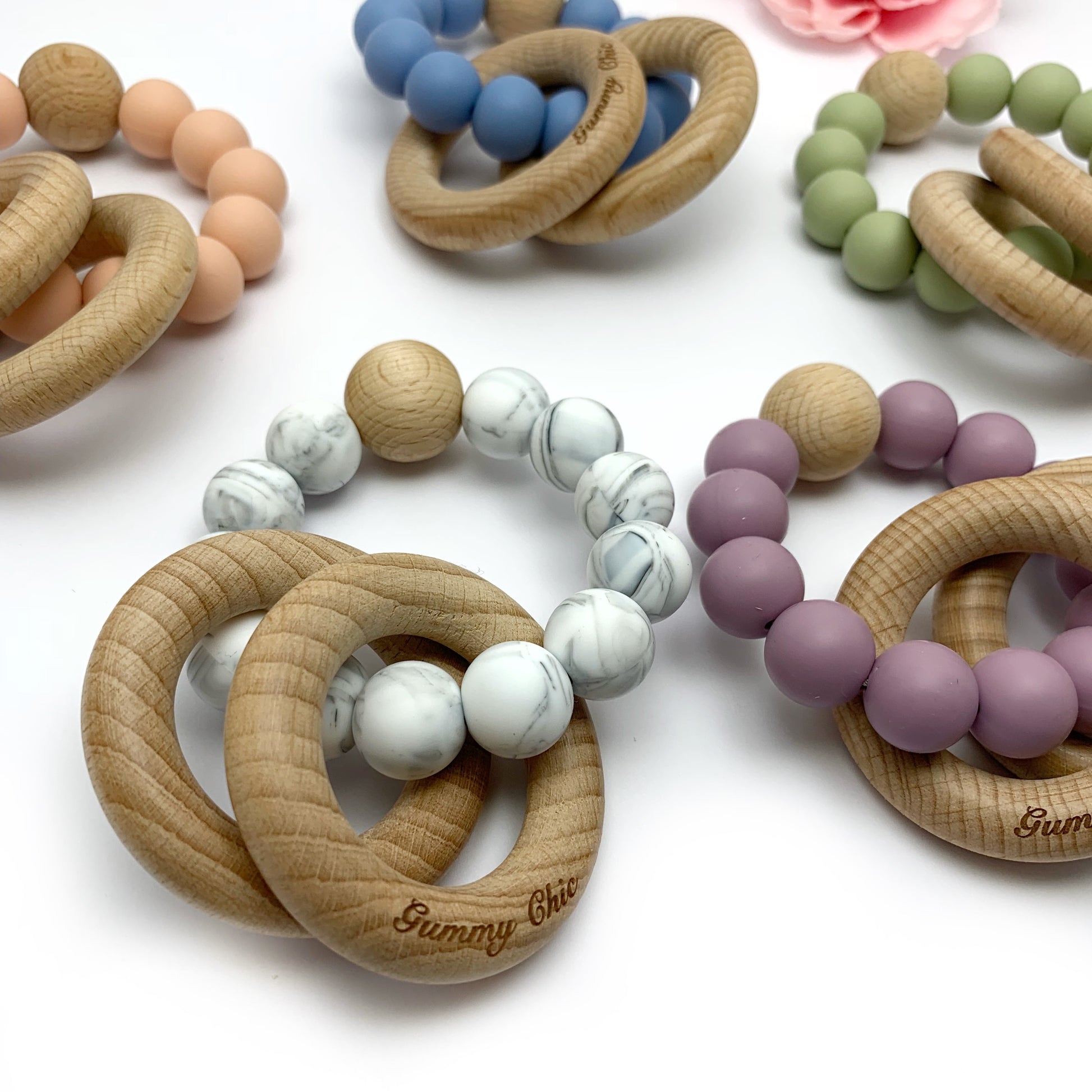 Remember, safety first when it comes to your little one's teething needs. For a minimalist teether rattle that combines style, safety, and functionality, look no further than our Silicone and Wood Handheld Teething Ring. Choose quality, choose Gummy Chic.