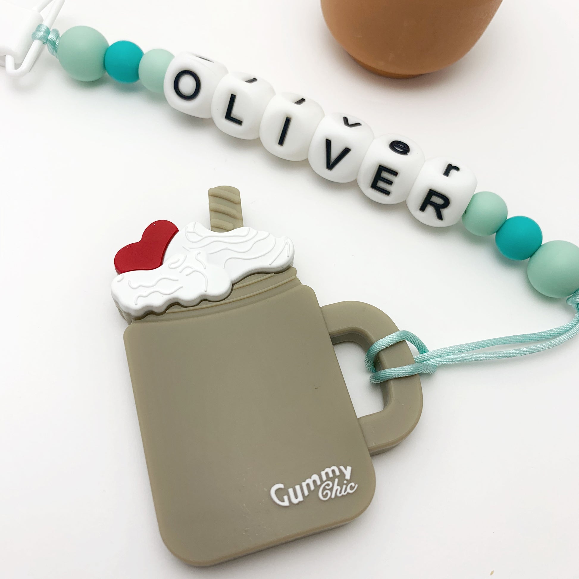 Introducing our customizable Milkshake Baby Teething Toy with Multi-Use Clip! This delightful silicone teether is not only adorable but also safe, stylish, and functional for your little one.